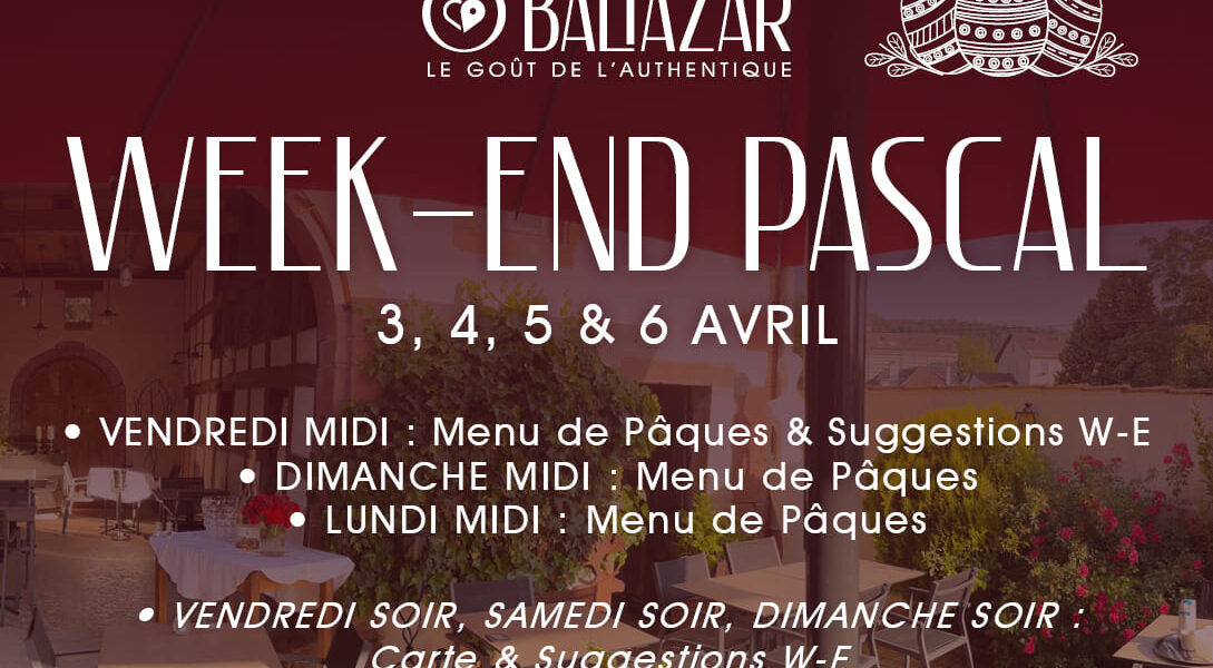 Voici le programme de notre week-end pascal chez O’Baltazar !Le vendredi 3 avril à midi, nous proposerons le menu de Pâques ainsi que, exceptionnellement, les suggestions du week-end. Il n’y aura donc pas de suggestions déjeuner ce jour-là !Le dimanche …